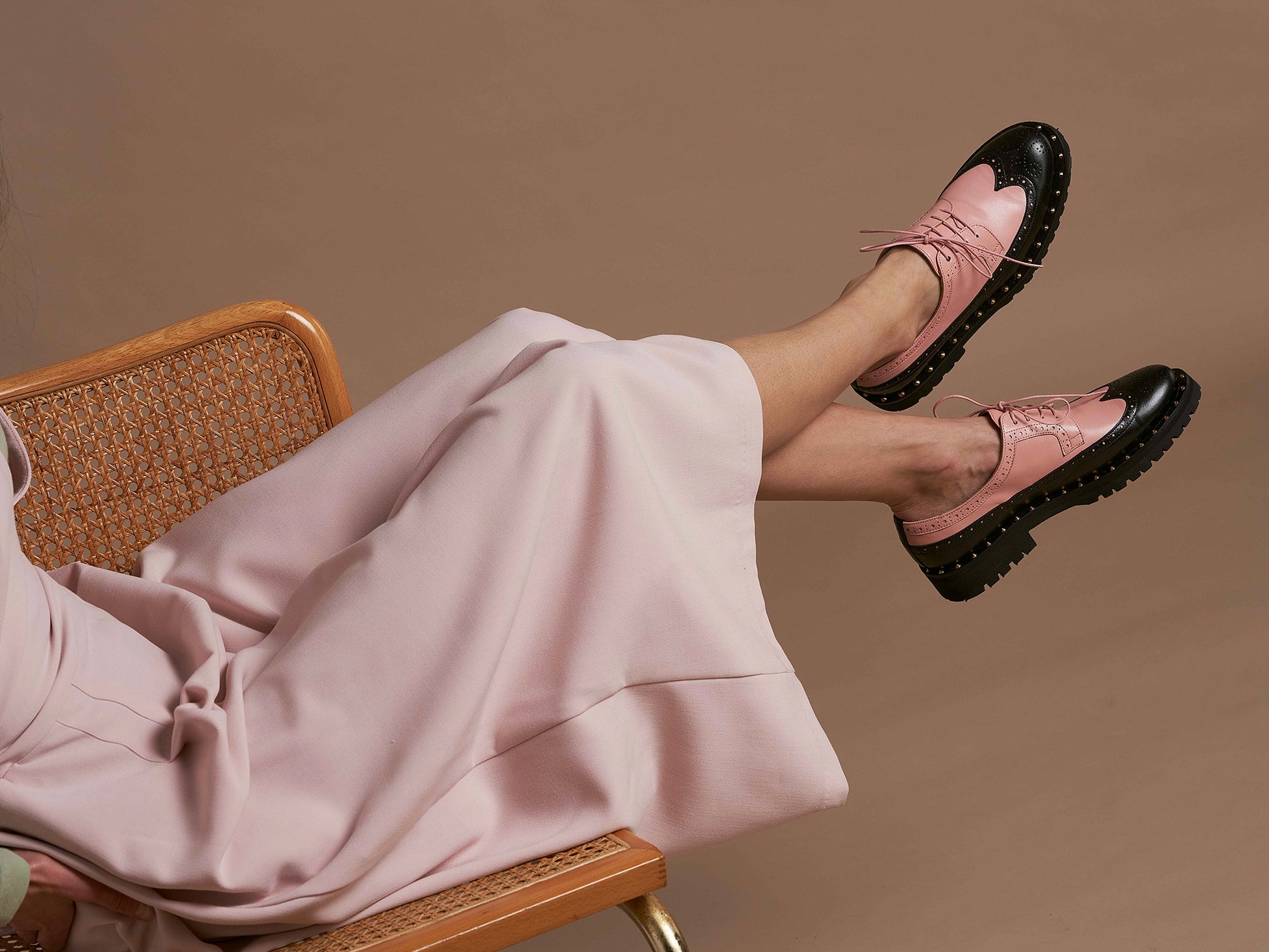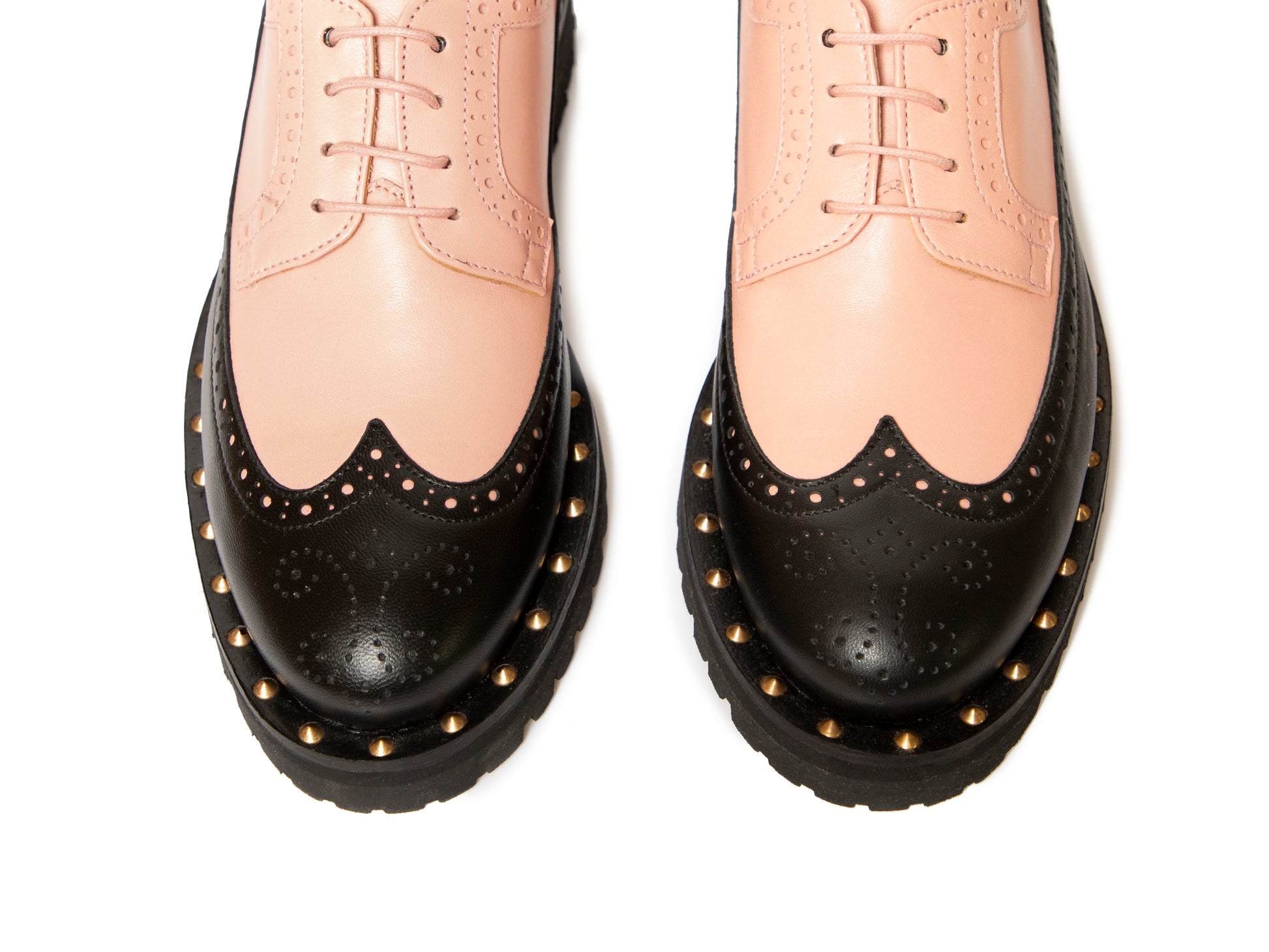FLAVIA - Pink and Black Long Wing Derby Shoe