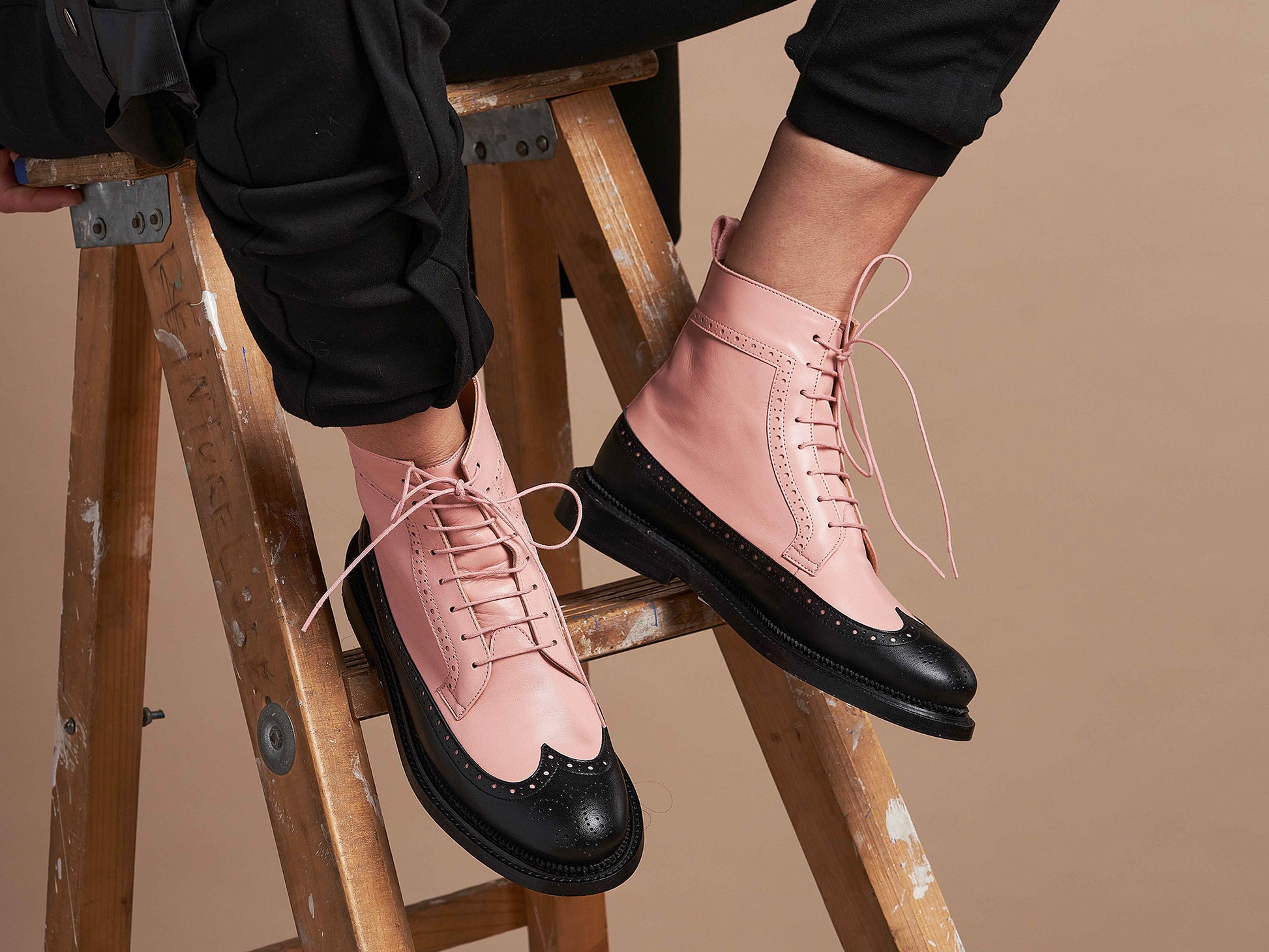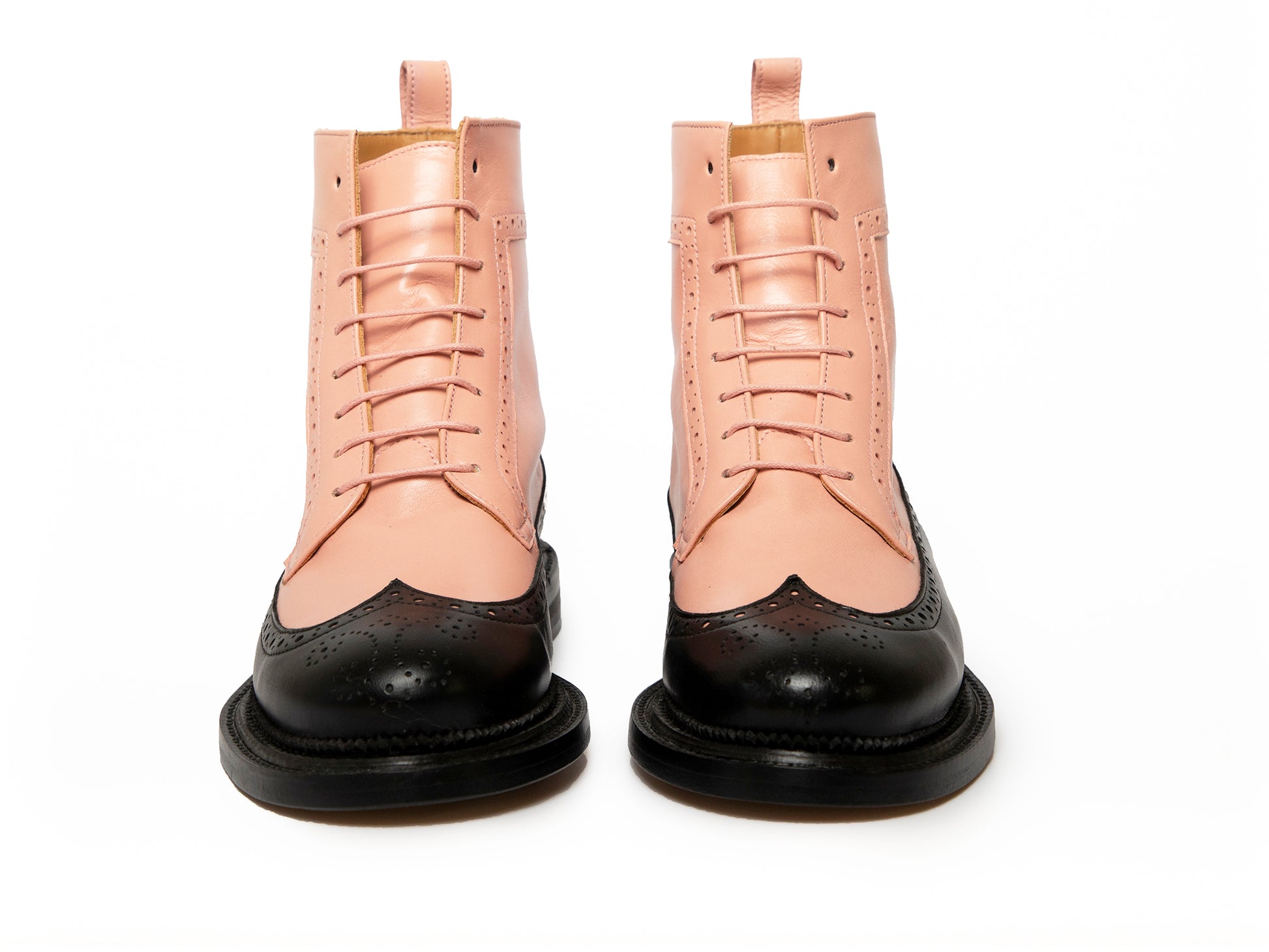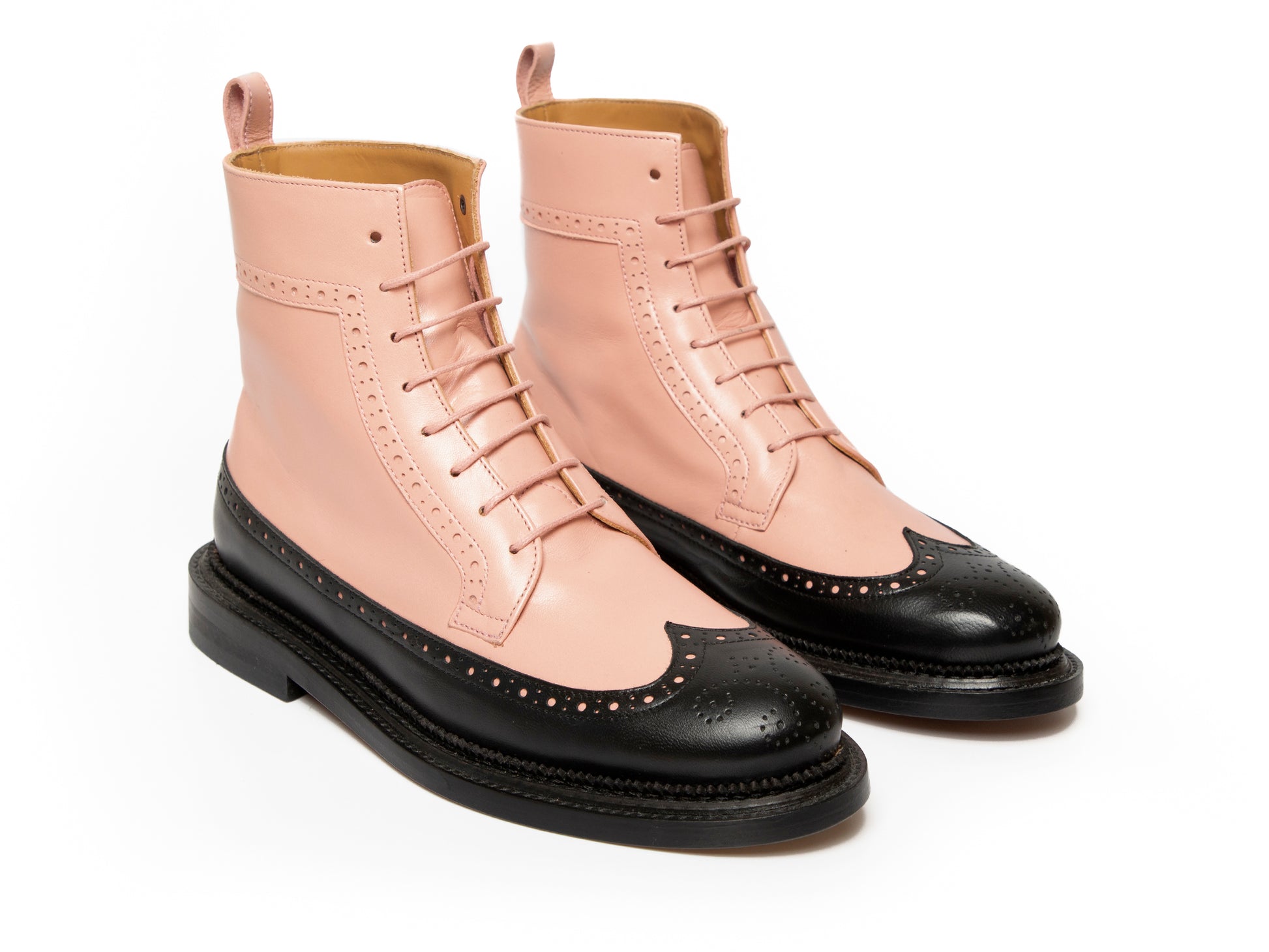 TILDA - Pink and Black Long Wing Derby Boot